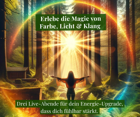 ★ Der FarbLichtFrequenz-Zauber als Schlüssel: Du erlebst, wie Farbe, Licht und Frequenz in deinem Energiefeld wirken – was deine FarbSignatur bedeutet und wie du ihn als Erfolgs-Ressource in deinem Leben nutzt.
